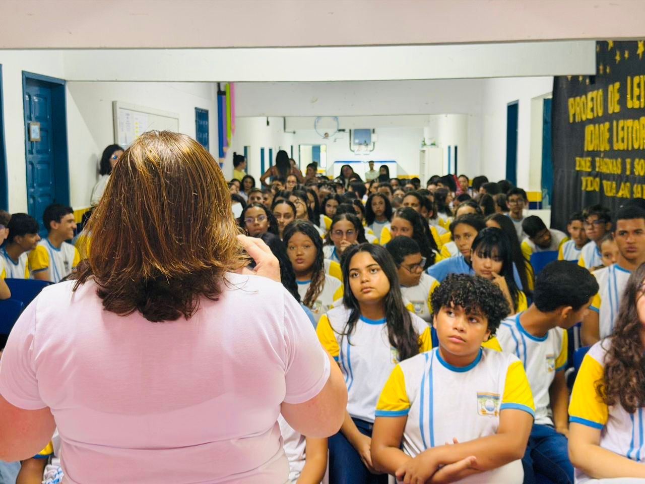 Durante a manhã, a programação movimentou a Escola Marizete Raposo. O diálogo direto com os estudantes foi conduzido por uma equipe técnica e institucional da gestão, contando com a presença da secretária da Mulher, Elisângela Nascimento; da secretária adjunta da Mulher, Carla Felinto; e da assessora jurídica da Casa dos Conselhos, Michelen Helia. As atividades na instituição também se estenderam para as turmas do turno da tarde.