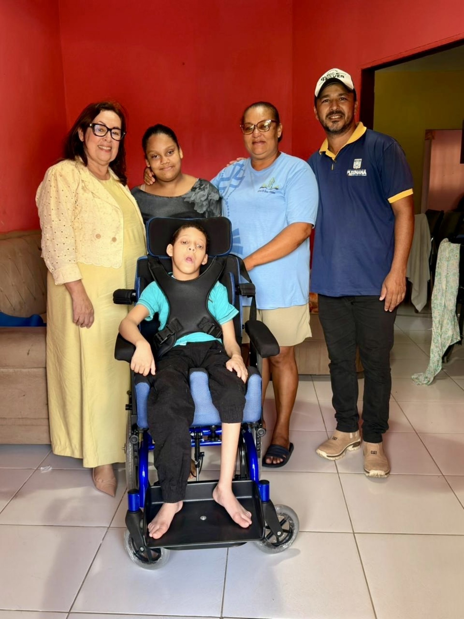 O equipamento, adquirido integralmente com recursos próprios do município, foi destinado ao adolescente Luiz Gabriel Nascimento Lima, de 16 anos, diagnosticado com paralisia cerebral, autismo e esquizofrenia. A cadeira de rodas atende às necessidades clínicas e posturais do paciente, garantindo maior conforto e mobilidade.