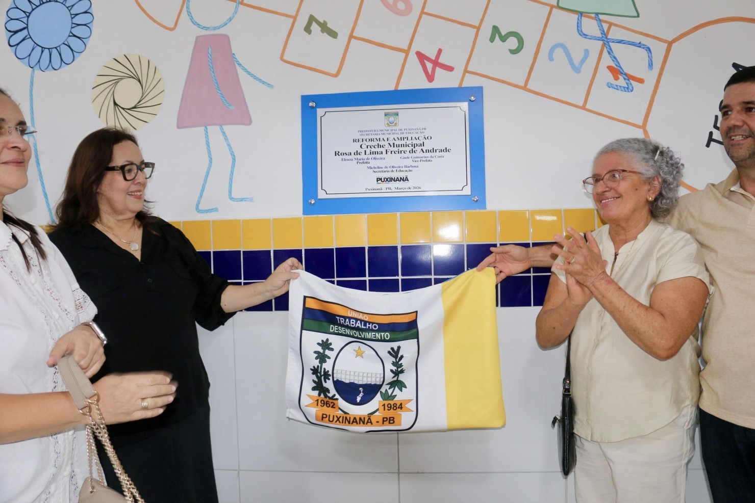 A Prefeitura Municipal de Puxinanã deu mais um importante passo para o fortalecimento da educação infantil nesta segunda-feira (30). Com um evento que reuniu autoridades e a comunidade, a gestão municipal inaugurou a nova Creche Municipal Rosa de Lima Freire de Andrade, localizada na PB-155 (saída para Montadas). A obra, realizada com recursos próprios do município, reforça o compromisso com o desenvolvimento das crianças e a tranquilidade das famílias puxinanaenses.