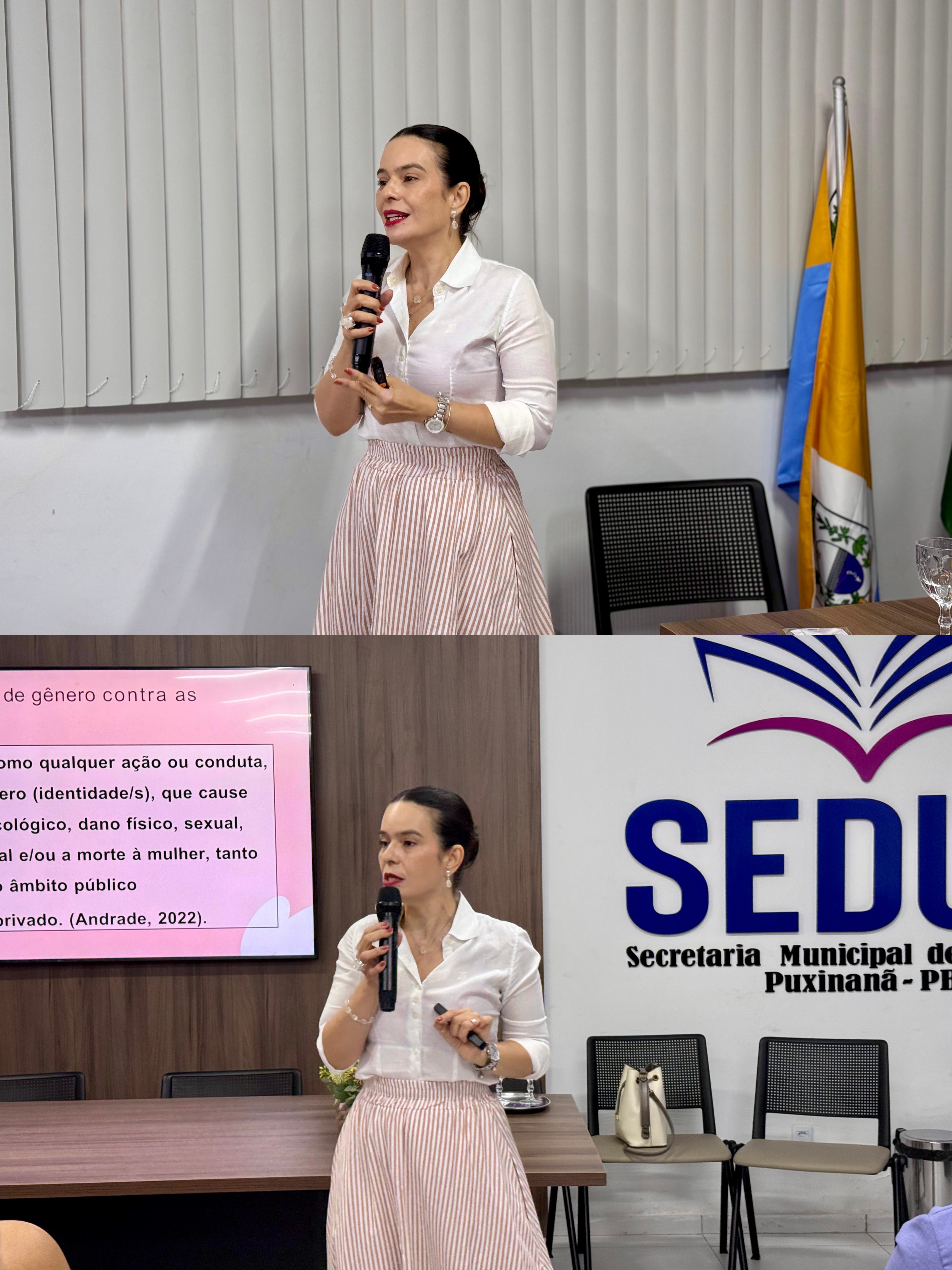 Na manhã desta sexta-feira (13), a Prefeitura Municipal de Puxinanã realizou um encontro voltado à orientação e ao cuidado das servidoras municipais. O evento, sediado no auditório da Secretaria de Educação e Cultura (SEDUC), foi promovido por meio de uma parceria entre a Secretaria da Mulher e a Secretaria de Saúde. O objetivo principal da ação foi capacitar a equipe para o acolhimento qualificado de mulheres e crianças vítimas de violência doméstica, além de promover a valorização das profissionais.