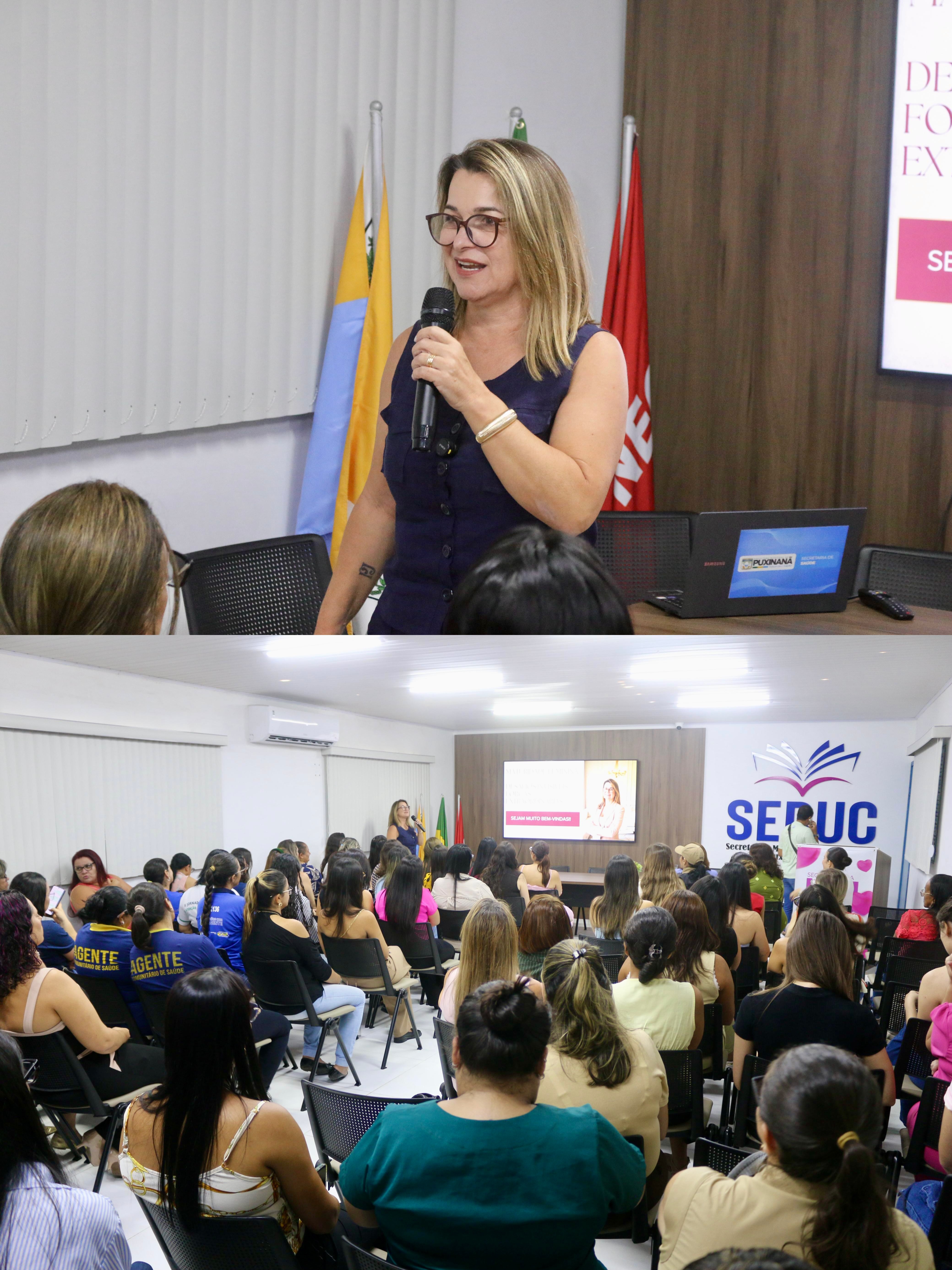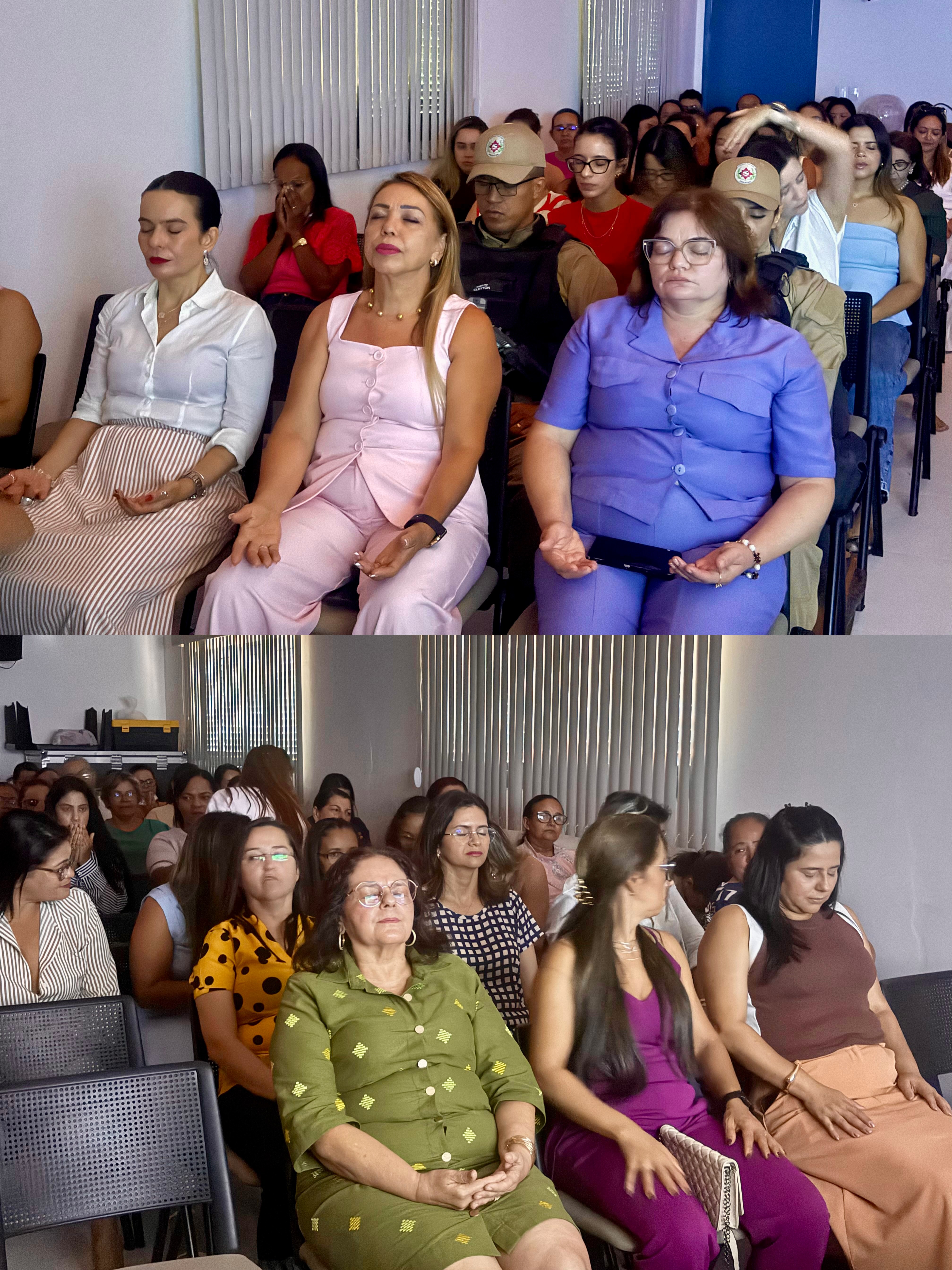 Além do foco na qualificação técnica, a organização do evento destinou um espaço para o cuidado com a saúde mental e o bem-estar das servidoras. As participantes receberam lembranças (mimos) e a programação foi encerrada no próprio auditório da SEDUC com uma sessão prática de relaxamento, conduzida pela terapeuta Siony.