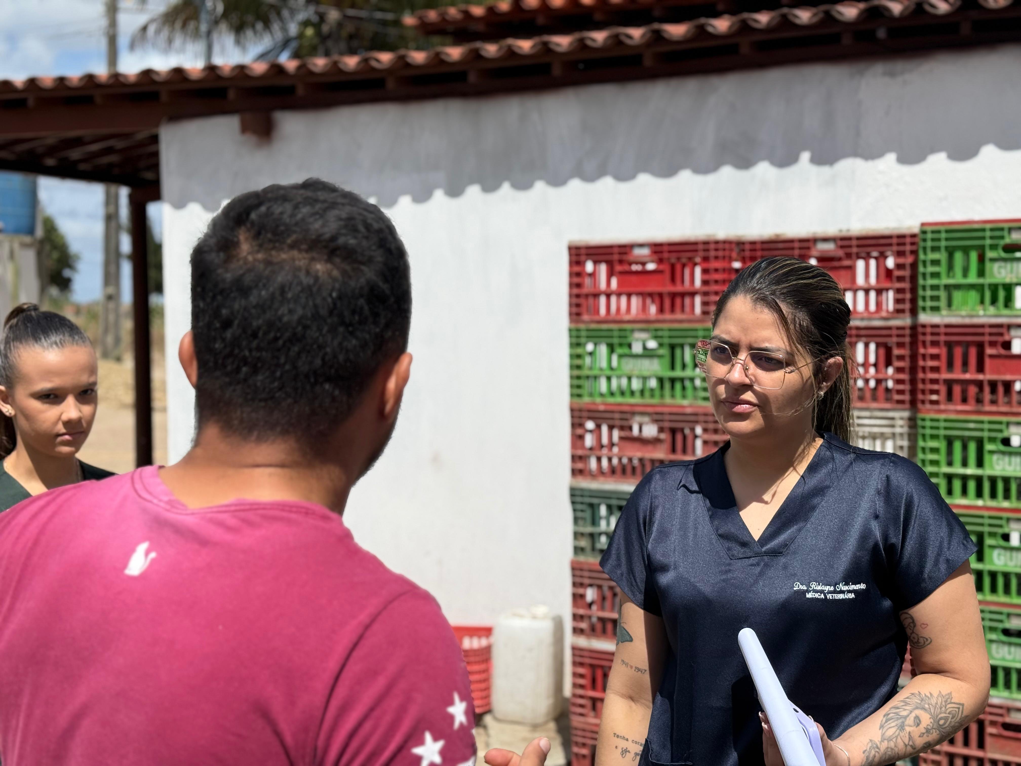 Participaram da visita o secretário adjunto de Agricultura, Marinaldo, a médica veterinária responsável pelo SIM, Rislayne, e a estagiária Natália.