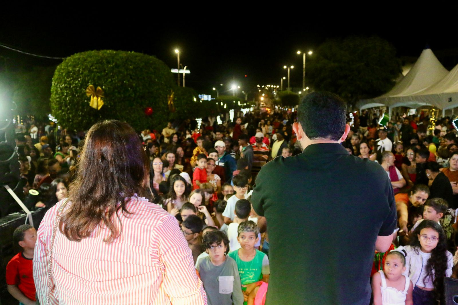 A abertura contou com o acendimento das luzes, deixando o espaço ainda mais iluminado e acolhedor para receber as famílias puxinanaenses. A chegada do Papai Noel também foi um dos momentos mais aguardados, especialmente pelas crianças, que lotaram o local para dar as boas-vindas ao bom velhinho. A programação da noite também trouxe a participação especial da Creche Filismina Gonçalves de Queiroz, que realizou uma bela apresentação.