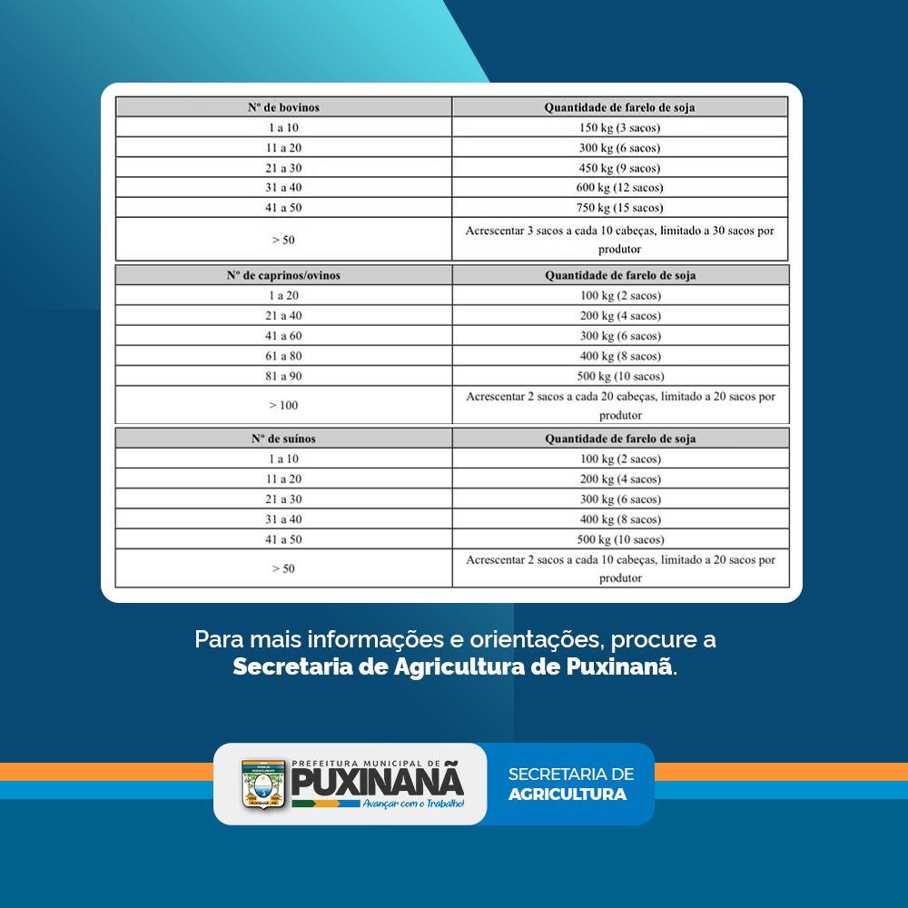 Para mais informações, procure a Secretaria de Agricultura de Puxinanã.