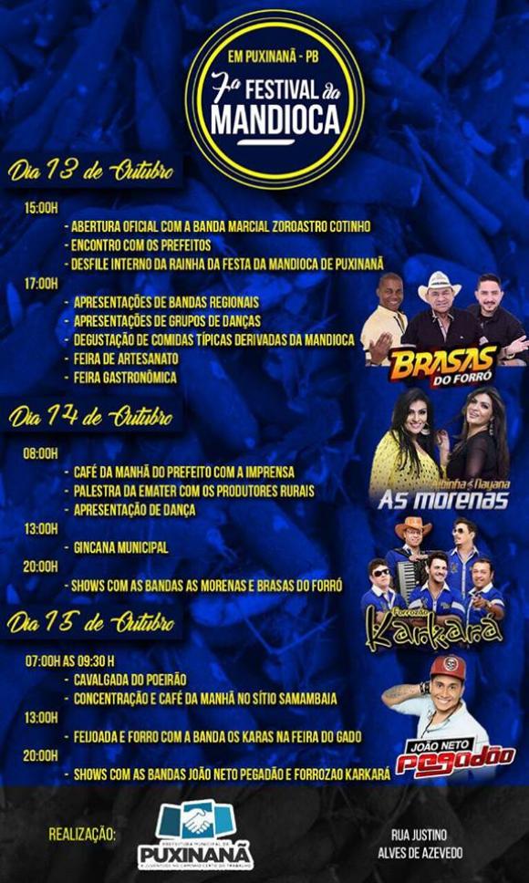 7º Festival da Mandioca de Puxinanã-PB, Confira nossa Progra...