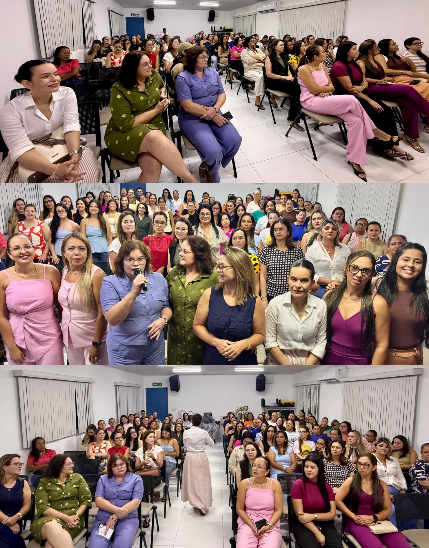 A abertura oficial da programação foi conduzida pela secretária da Mulher, Elisângela Nascimento, juntamente com a secretária de Saúde, Leila Cavalcanti. O evento contou com a presença da prefeita do município, Eleuza de Oliveira; da vice-prefeita, Gisele Agripino; e da procuradora do município, Catarine Oliveira, que acompanharam as atividades direcionadas às profissionais que atuam na linha de frente do atendimento à população.