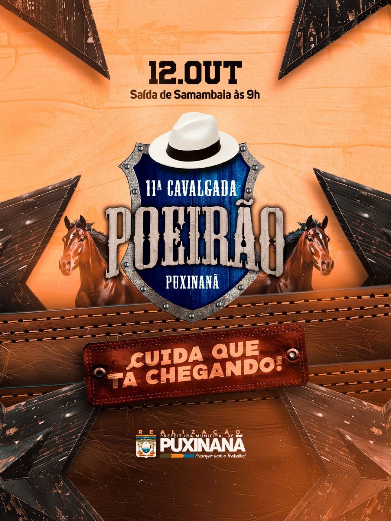 A tradicional Cavalgada Poeirão acontecerá no dia 12 de outubro, a partir das 9h, com saída de Samambaia. Mais uma vez, a tradição vai tomar conta das ruas de Puxinanã.