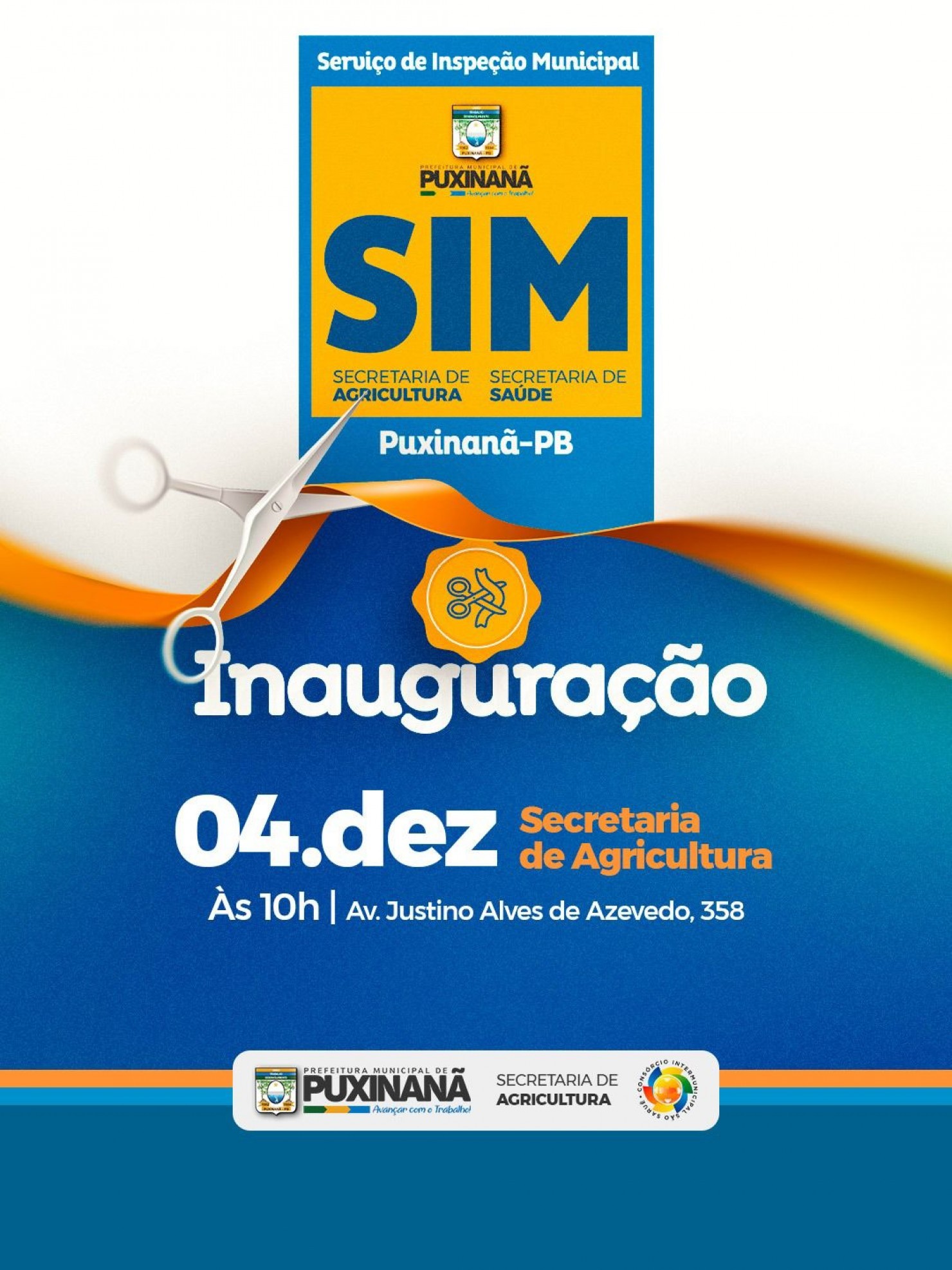 A Prefeitura de Puxinanã inaugura, nesta quinta-feira (4), às 10h, o Serviço de Inspeção Municipal (SIM), em cerimônia que acontecerá na sede da Secretaria de Agricultura, localizada na Avenida Justino Alves de Azevedo, nº 358.